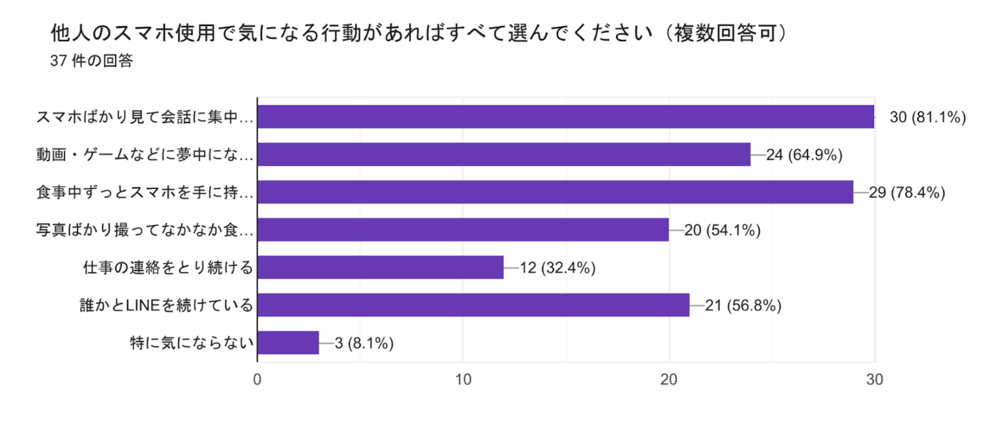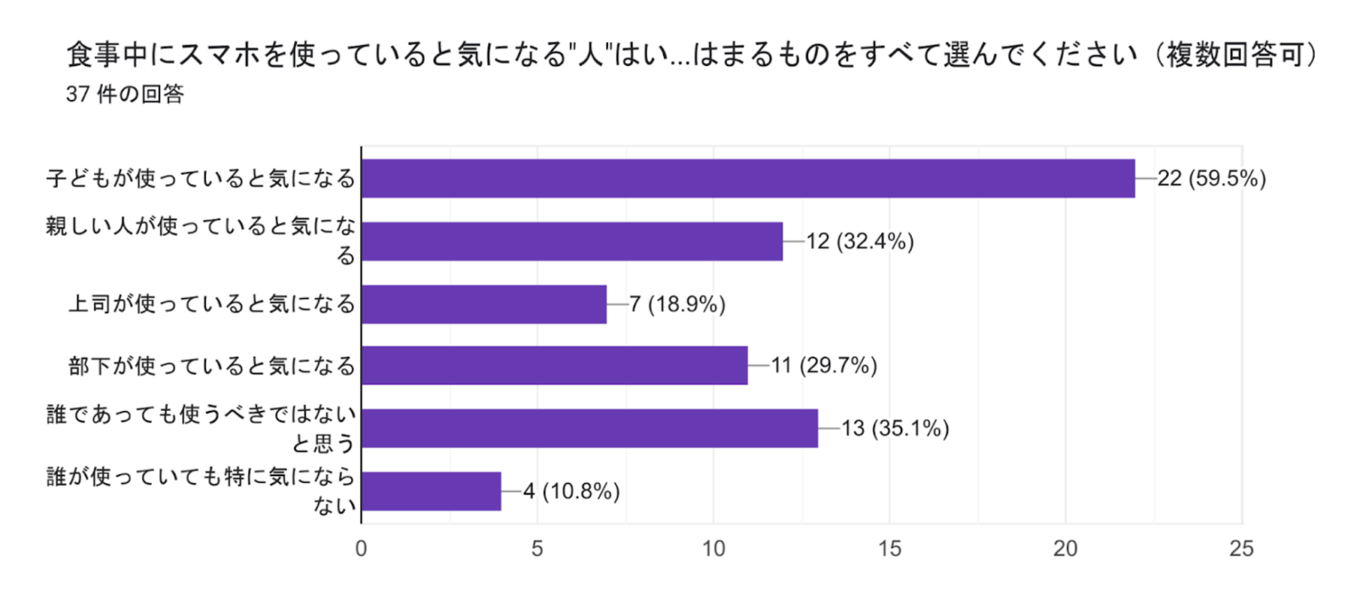 などなど、人それぞれのマナーを守って、スマホと食事に向き合っている様子がうかがえます。