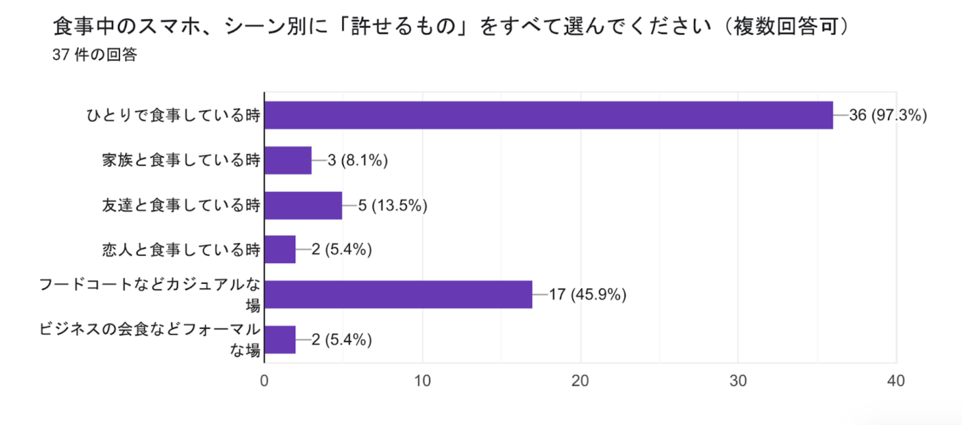 大多数の人が、「ひとりで食事している時」ならスマホOKだったのです。