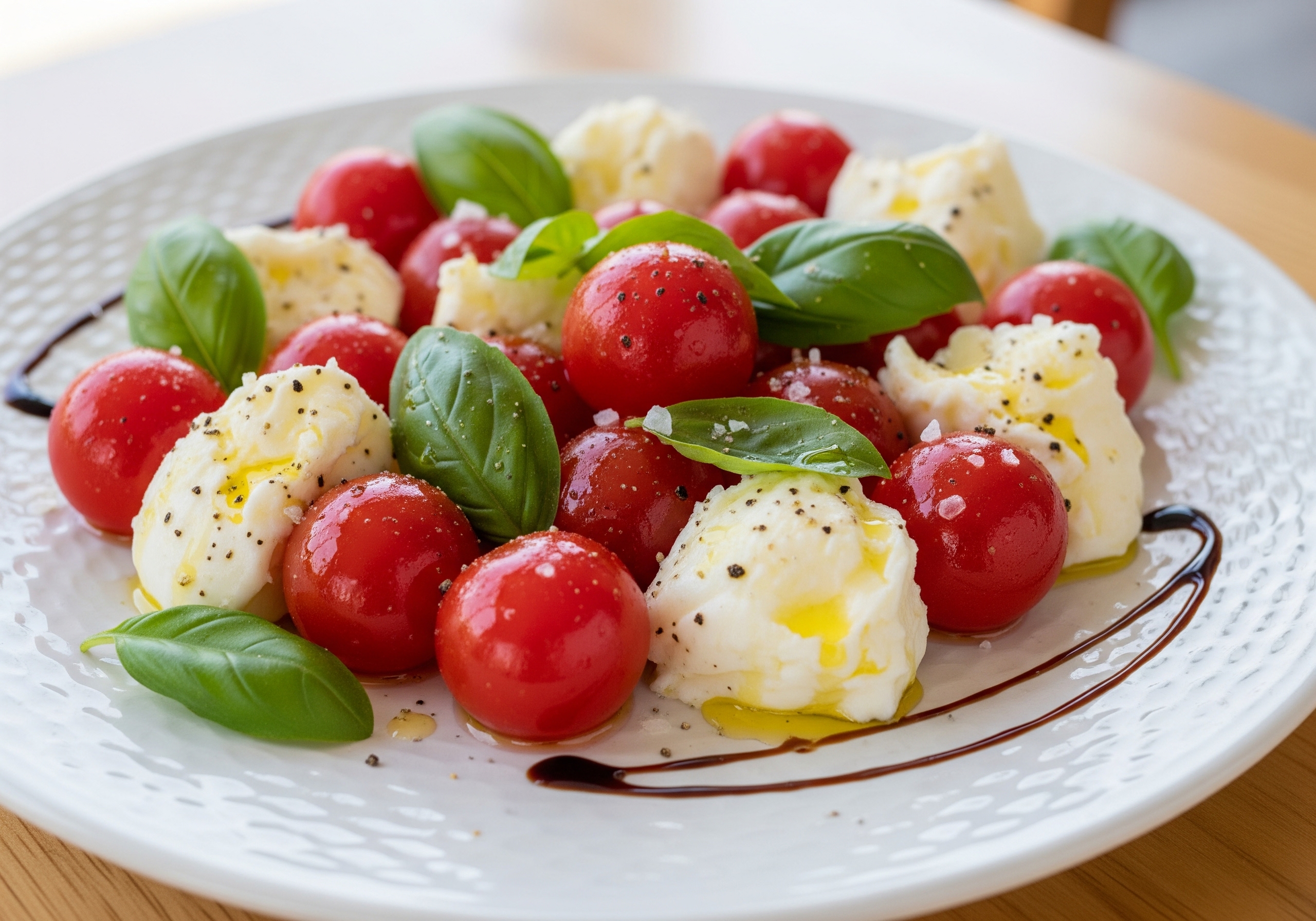 - バジルの葉を散らし、オリーブオイルと塩こしょうで味付け。
