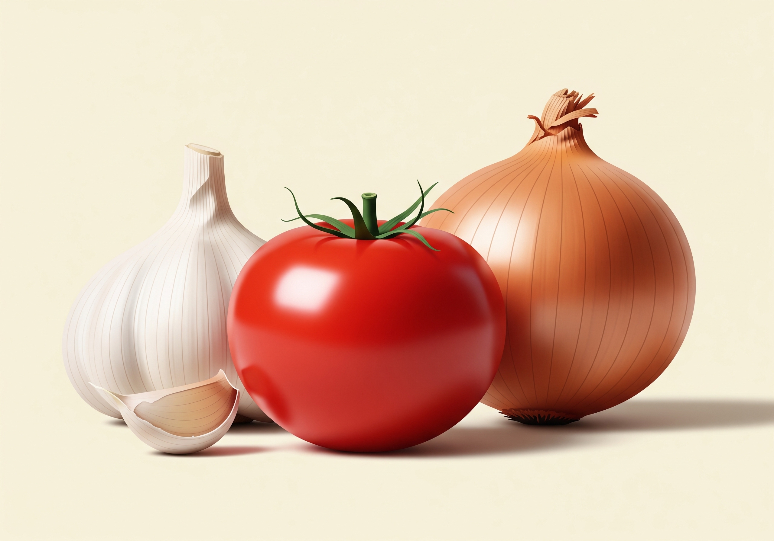 さらに、トマト料理をワンランクアップさせる隠し味が「にんにく」と「たまねぎ」。
