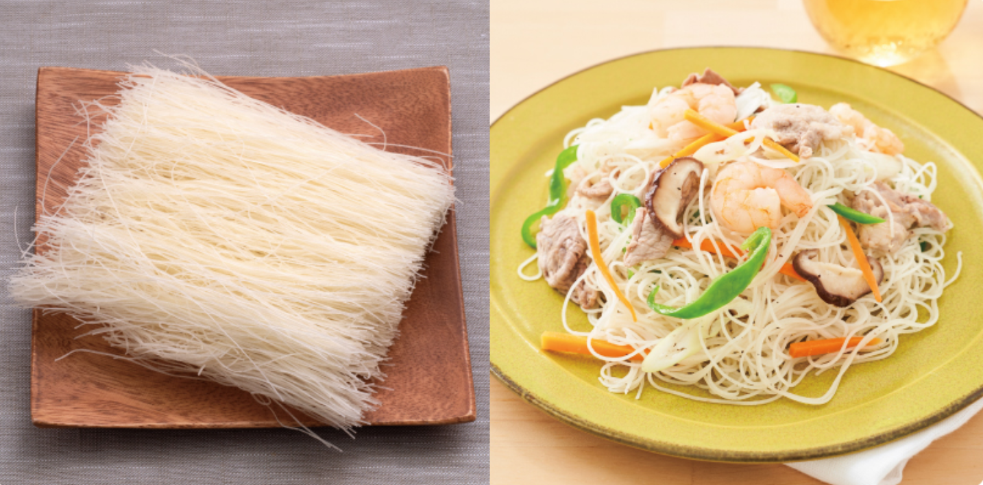 米粉を原料にした麺の一種で、英語では”Rice vermicelli(ライス・ヴァーミセリ)”と呼ばれ、アジア圏で広く親しまれています。