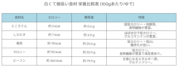 - とことんヘルシーにしたい日は「しらたき」「ところてん」