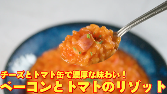 今回ご紹介するのは、旨みたっぷりのベーコンとトマト缶を使った「ベーコンとトマトのチーズリゾット」。