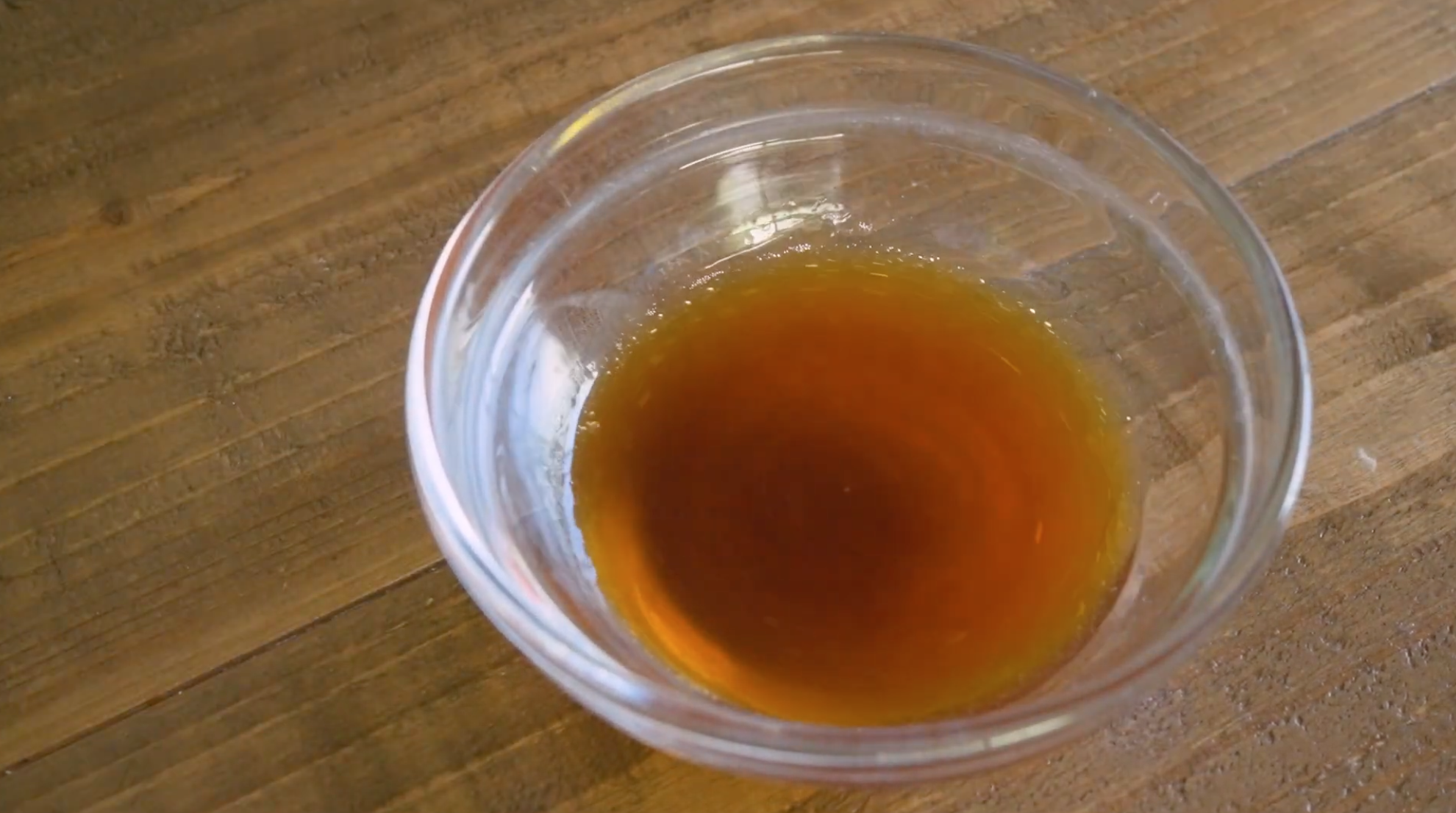 ⑥ ハンバーグを焼いている間に、ポン酢・レモン果汁・ごま油・にんにくチューブを混ぜて香味ソースを作っておきます。