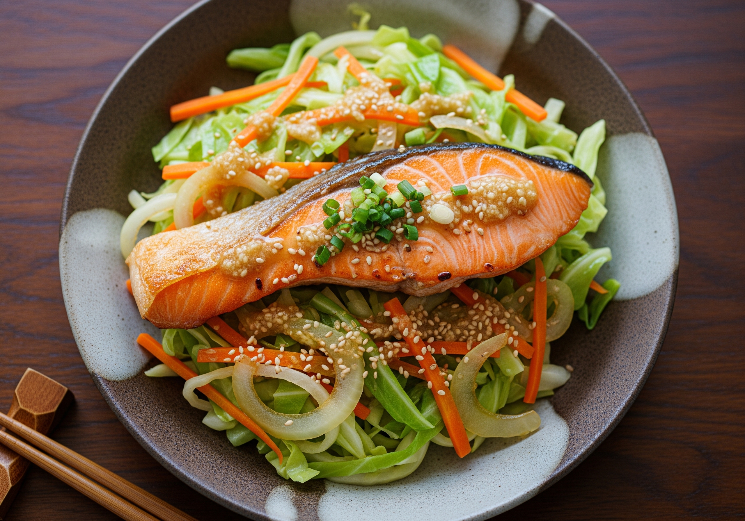 味噌とバターの香りが食欲を刺激し、ホクホクの鮭と甘くなった野菜が絶妙なハーモニーを生み出します。