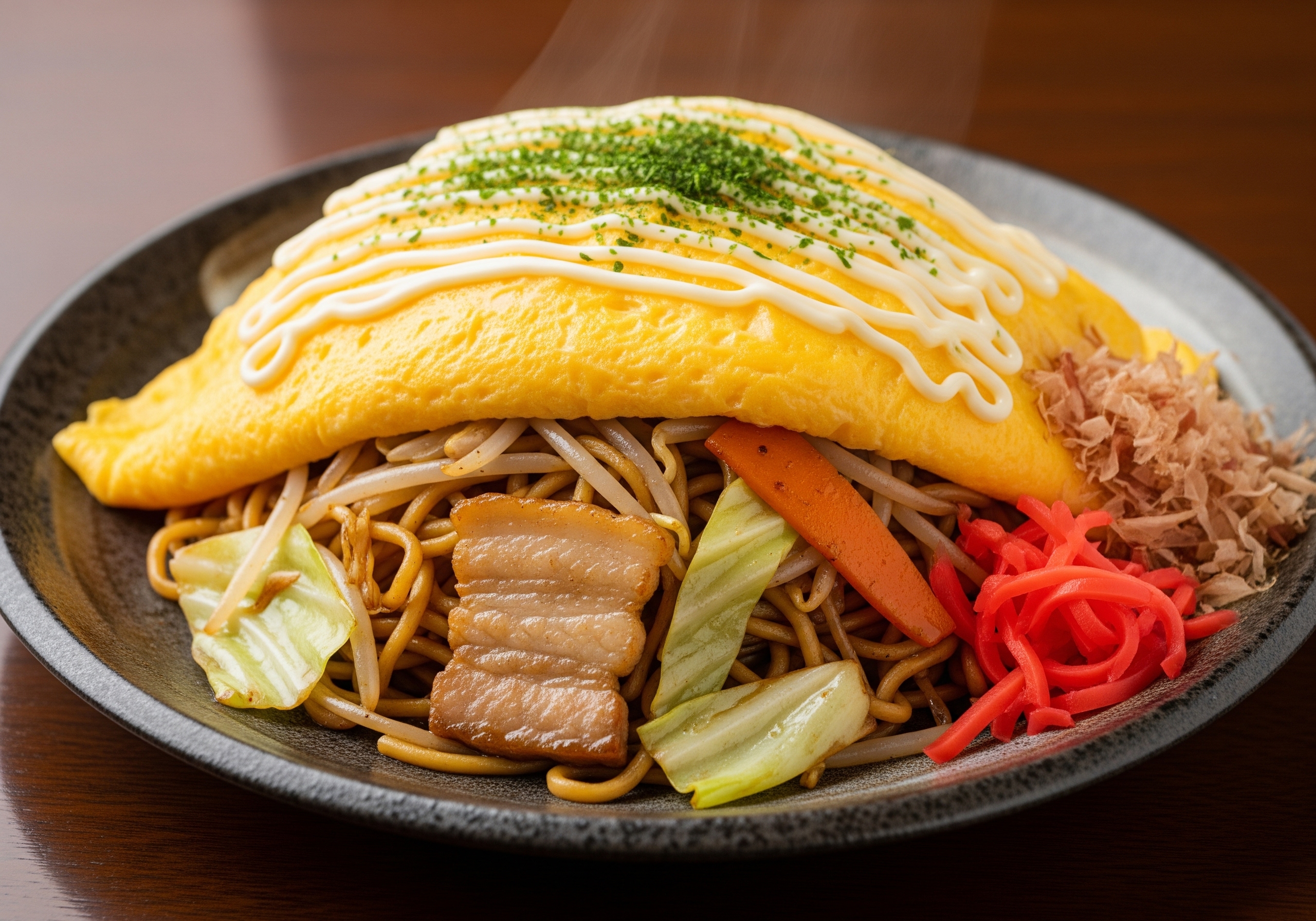 ソースの香りが食欲をそそり、ふんわり卵が全体をまろやかに包み込みます。