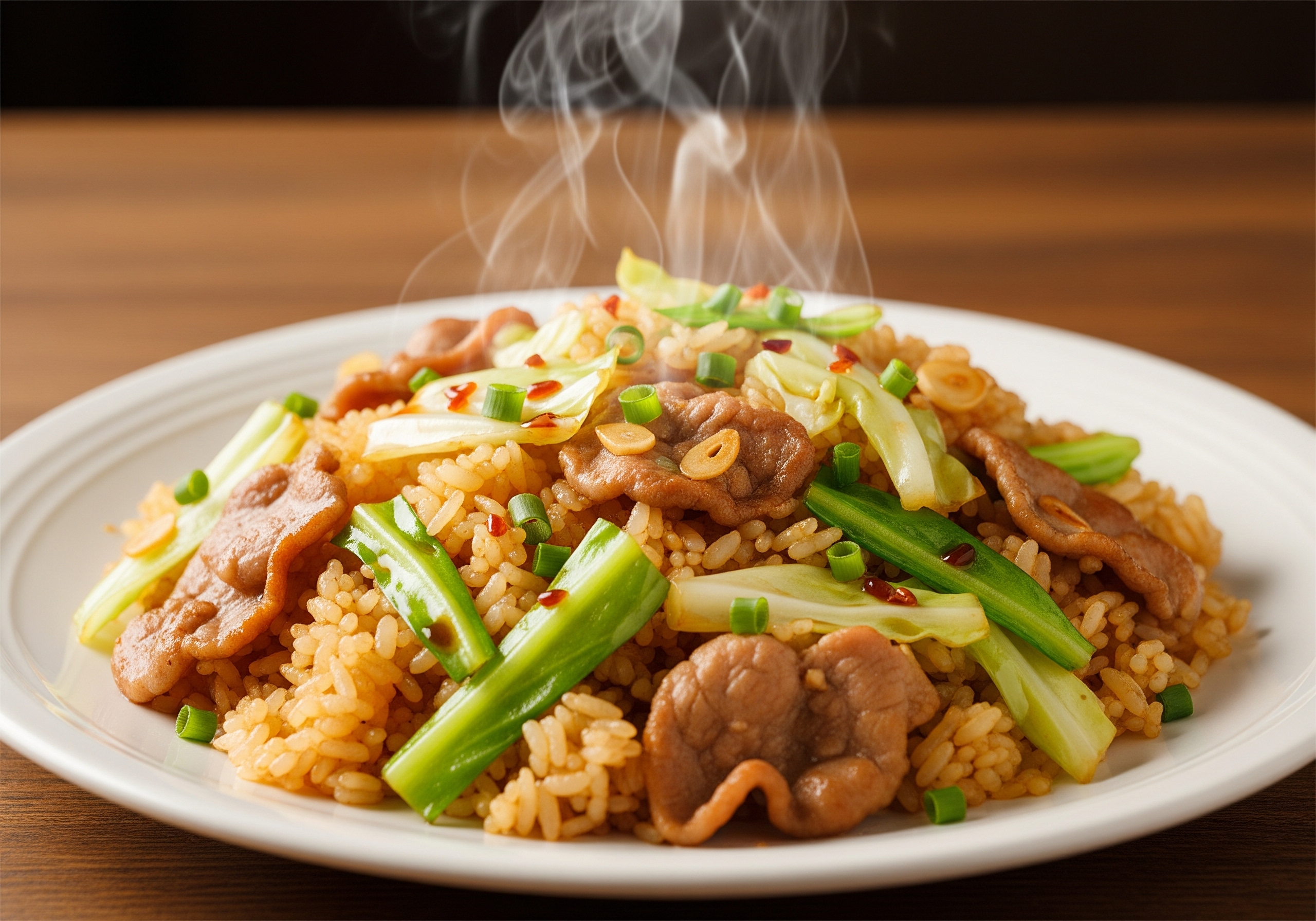 にんにくの香りが食欲をそそる、満足感たっぷりの炒めごはんです。