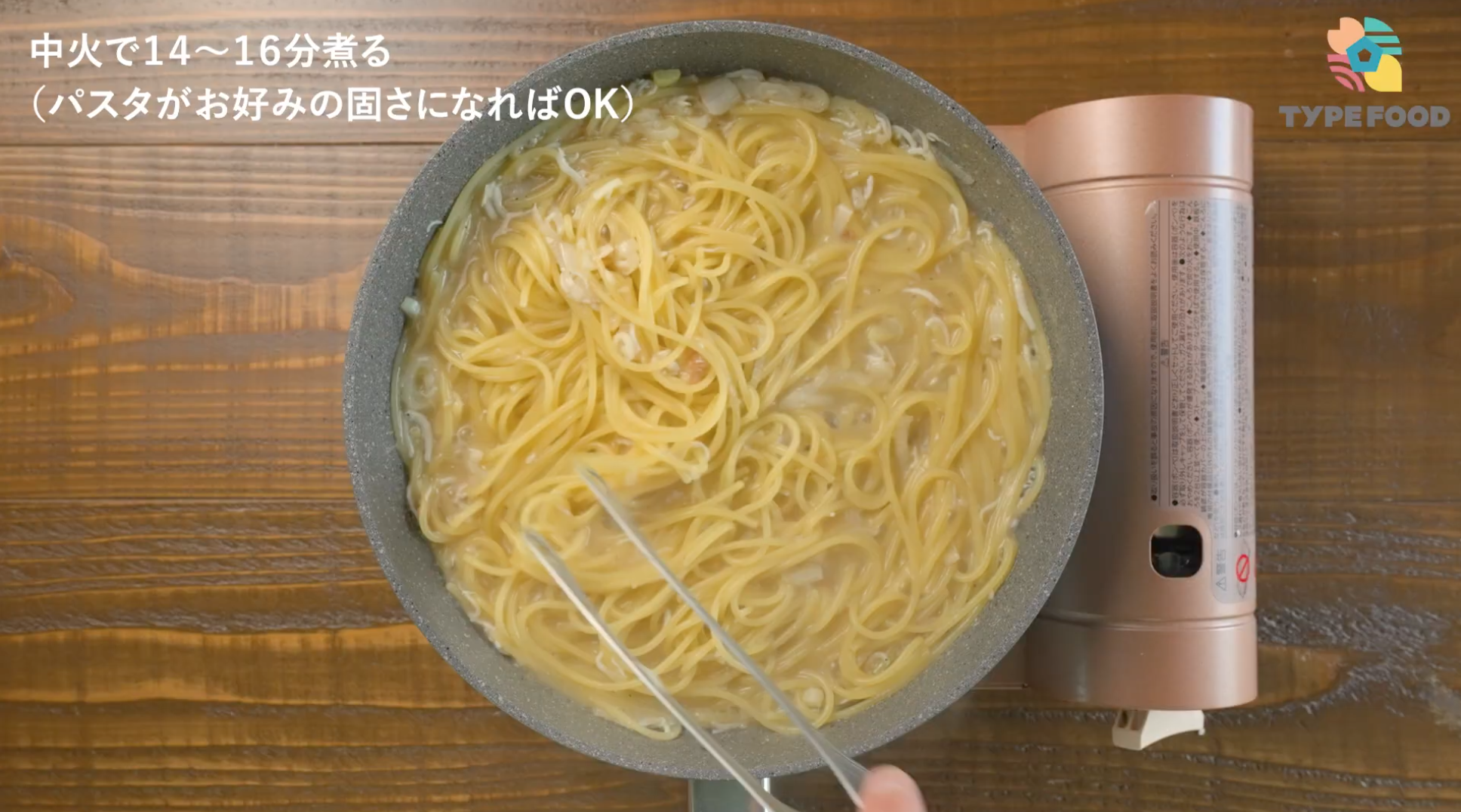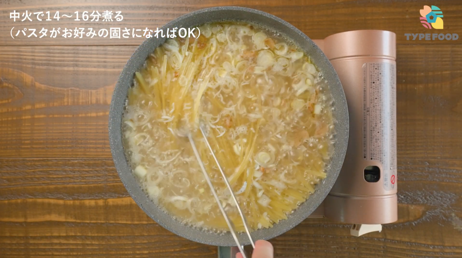 水分が程よく飛び、パスタがお好みの固さになればOK!