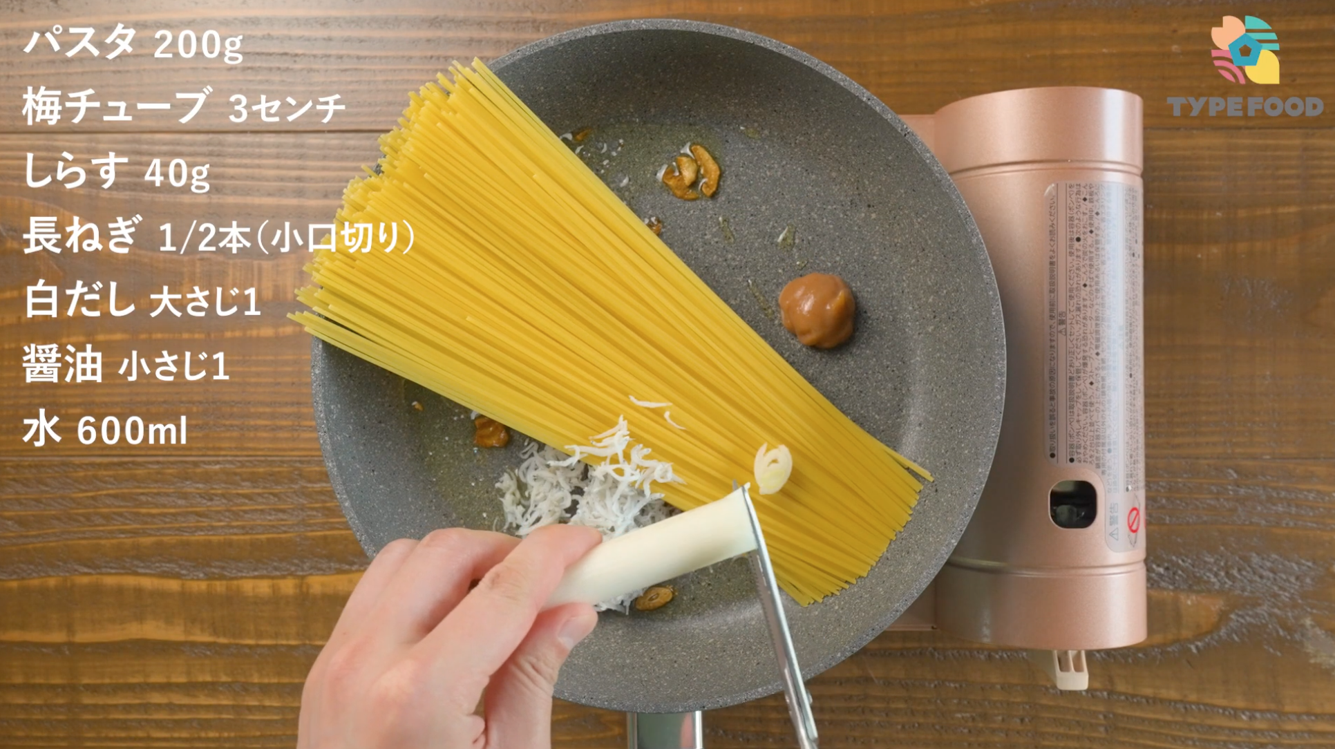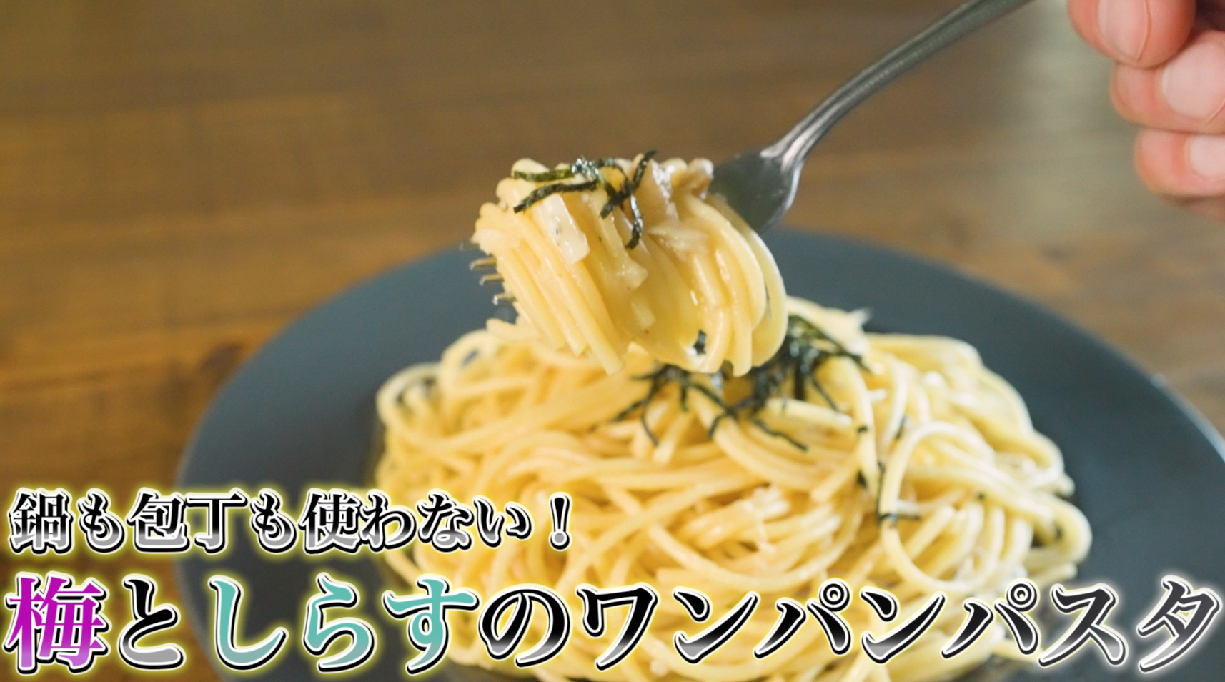 今回ご紹介するのは、フライパンひとつで完成する「梅としらすのワンパンパスタ」。