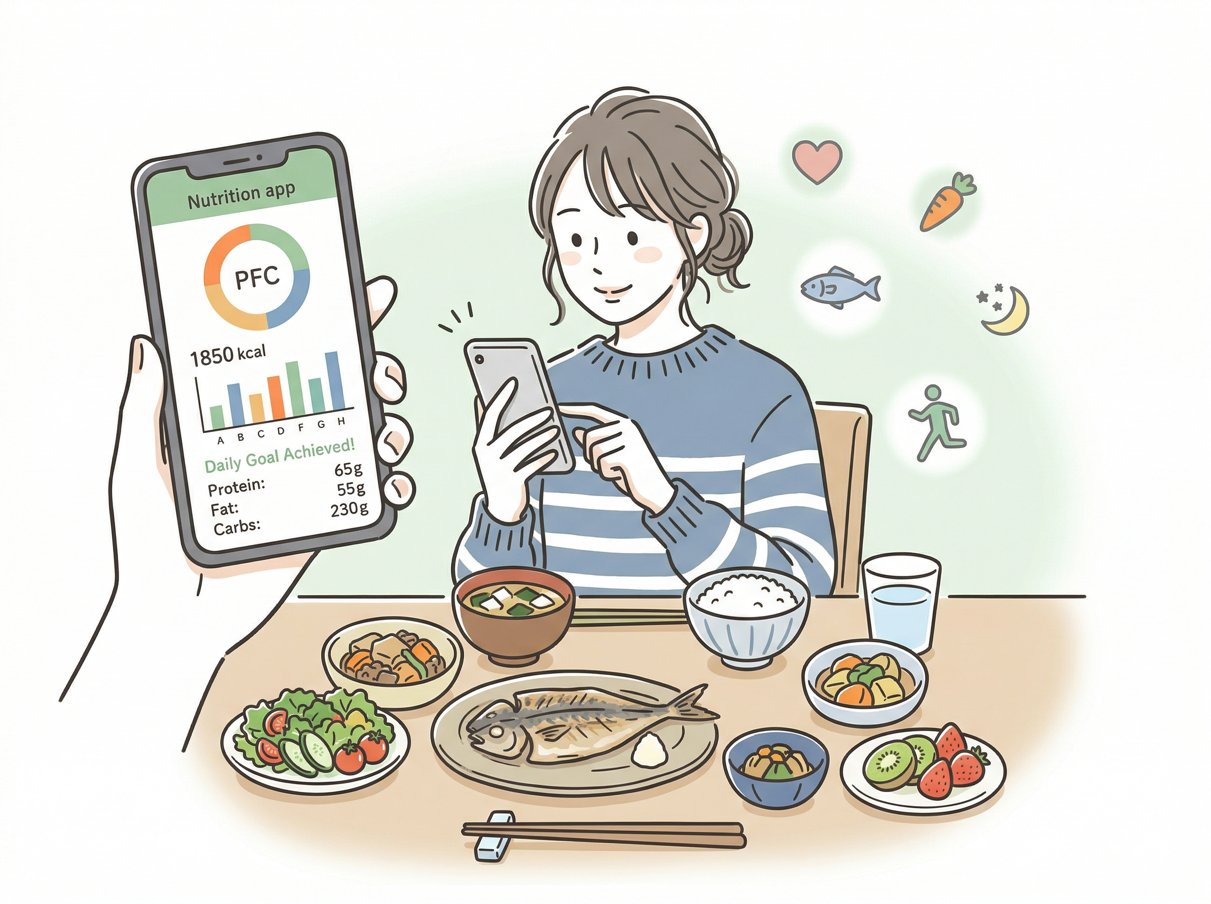 歩数や心拍数、睡眠の質はもちろん、食事のカロリーや栄養素の計測までスマホ一つでできるようになりましたね。