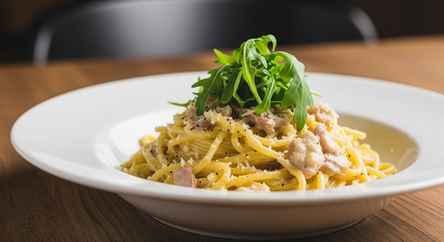 パスタの仕上げにルッコラをのせるだけで、雰囲気が一気におしゃれに。
