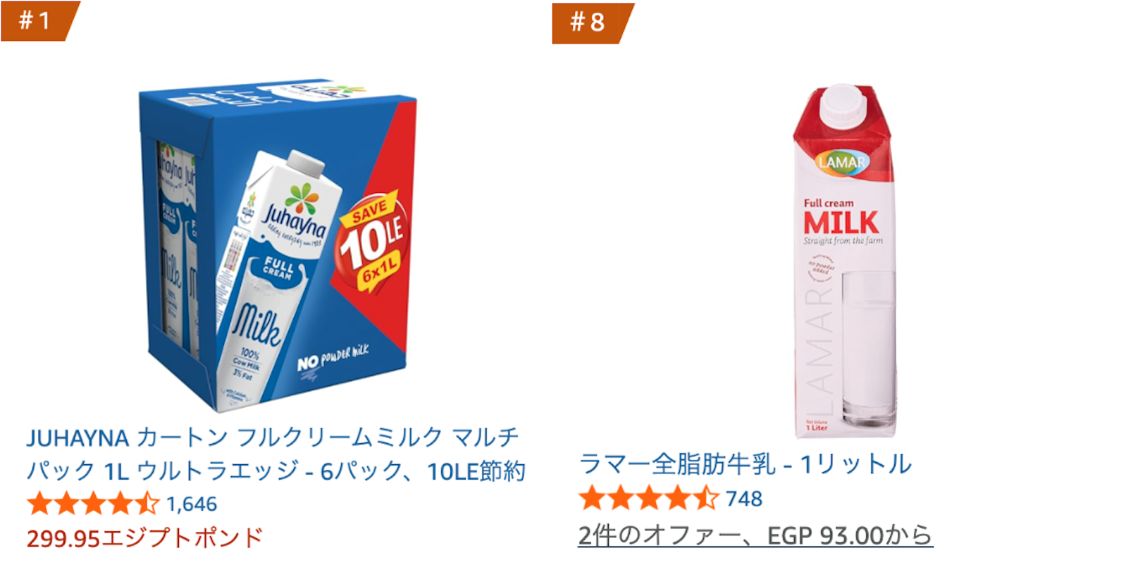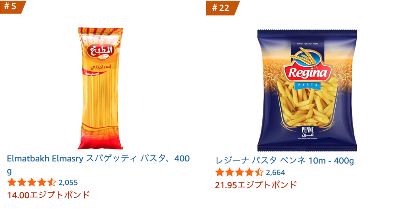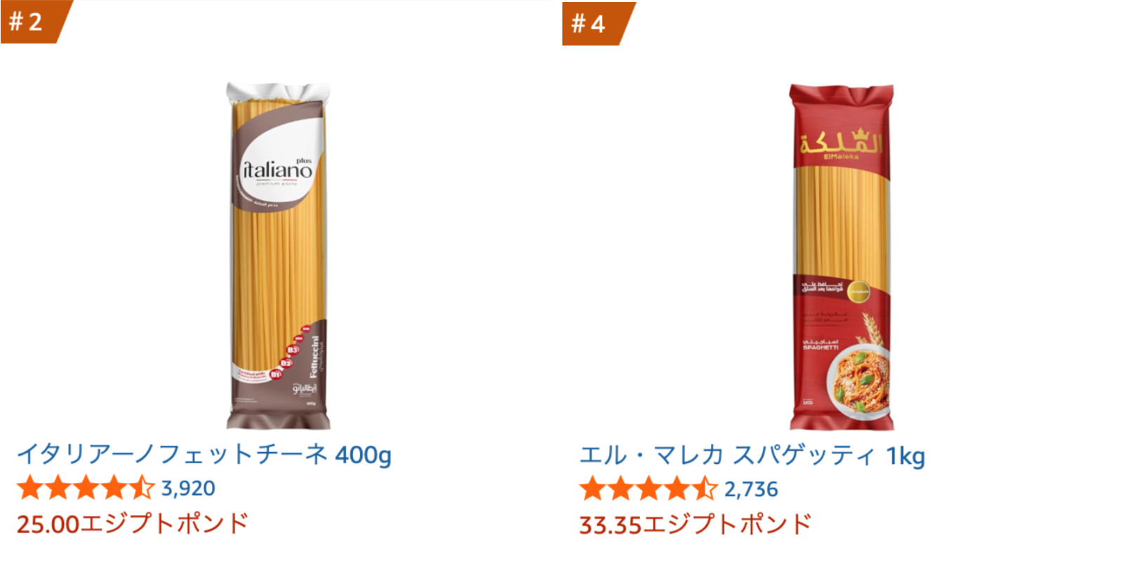 エジプトのAmazonでは、パスタ製品が数多くランクインしています。