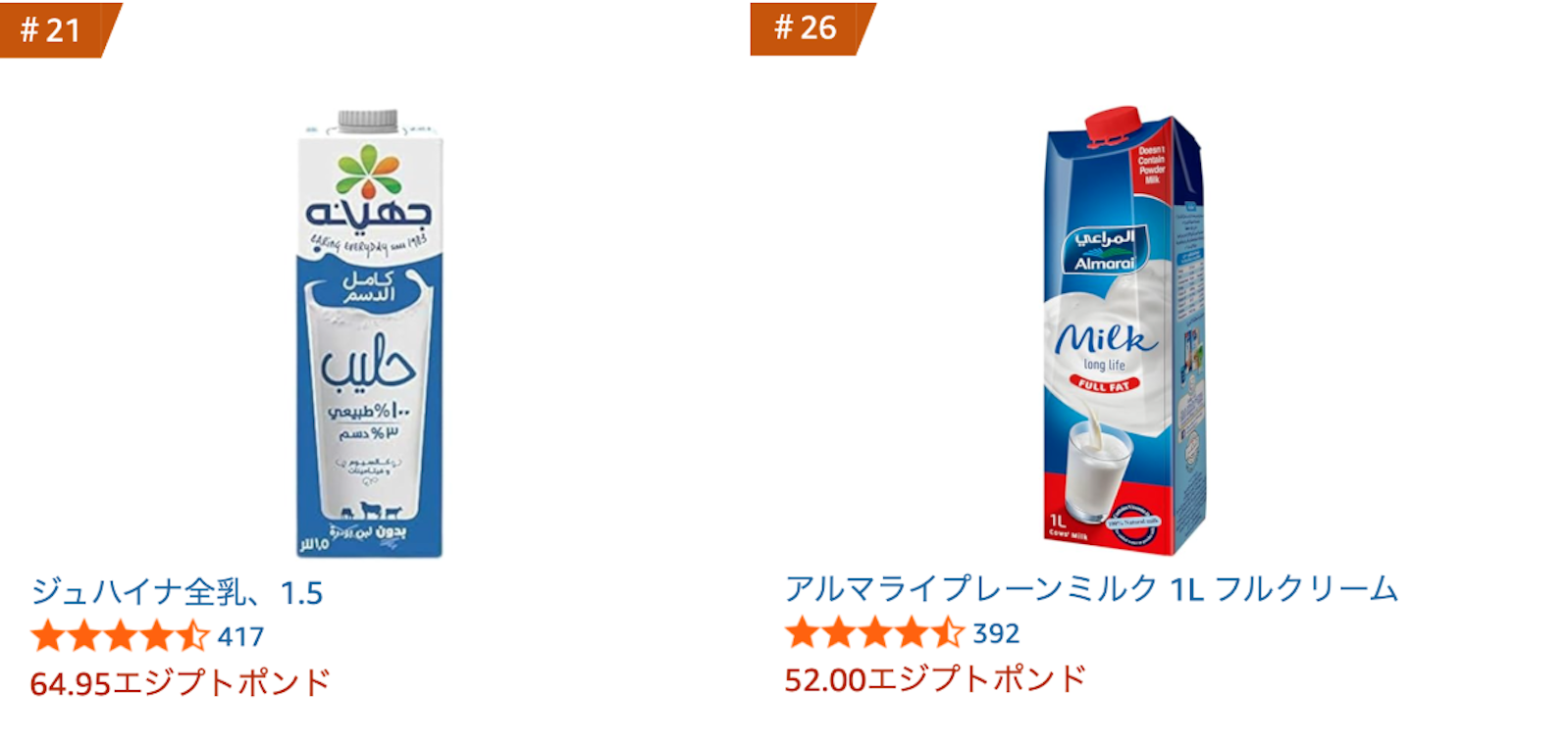 また、エジプト最大手の乳製品メーカー「ジュハイナ(Juhayna)」が常温保存できる牛乳を安定的に供給していることも大きな理由のひとつ。