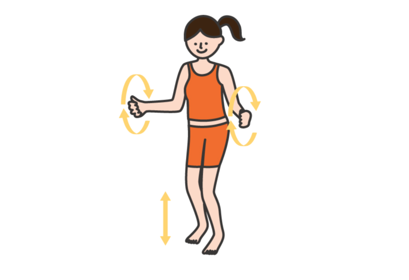 腕も縄を回すように大きく動かすと、上半身と下半身を同時に動かせて効率的です。