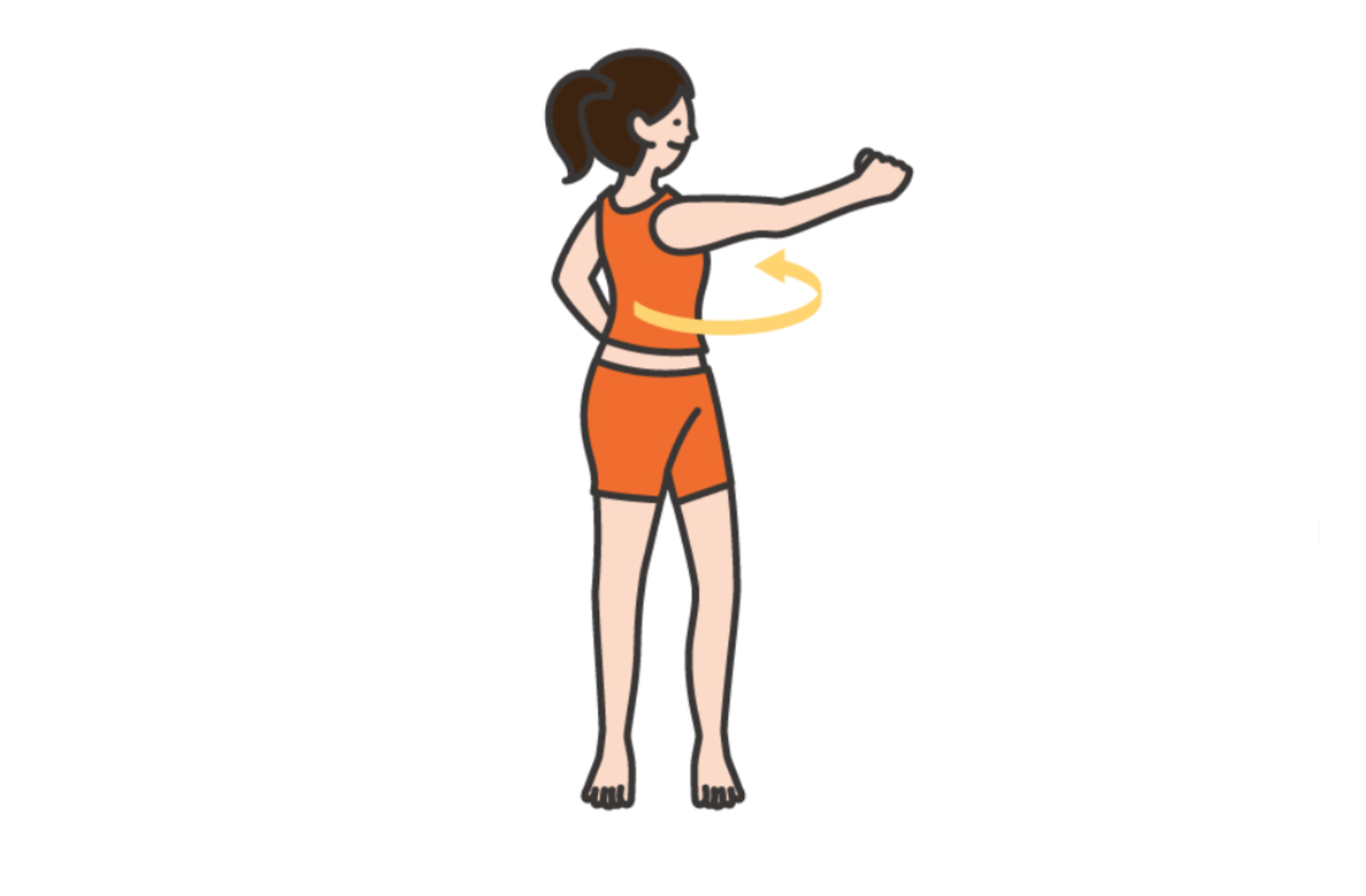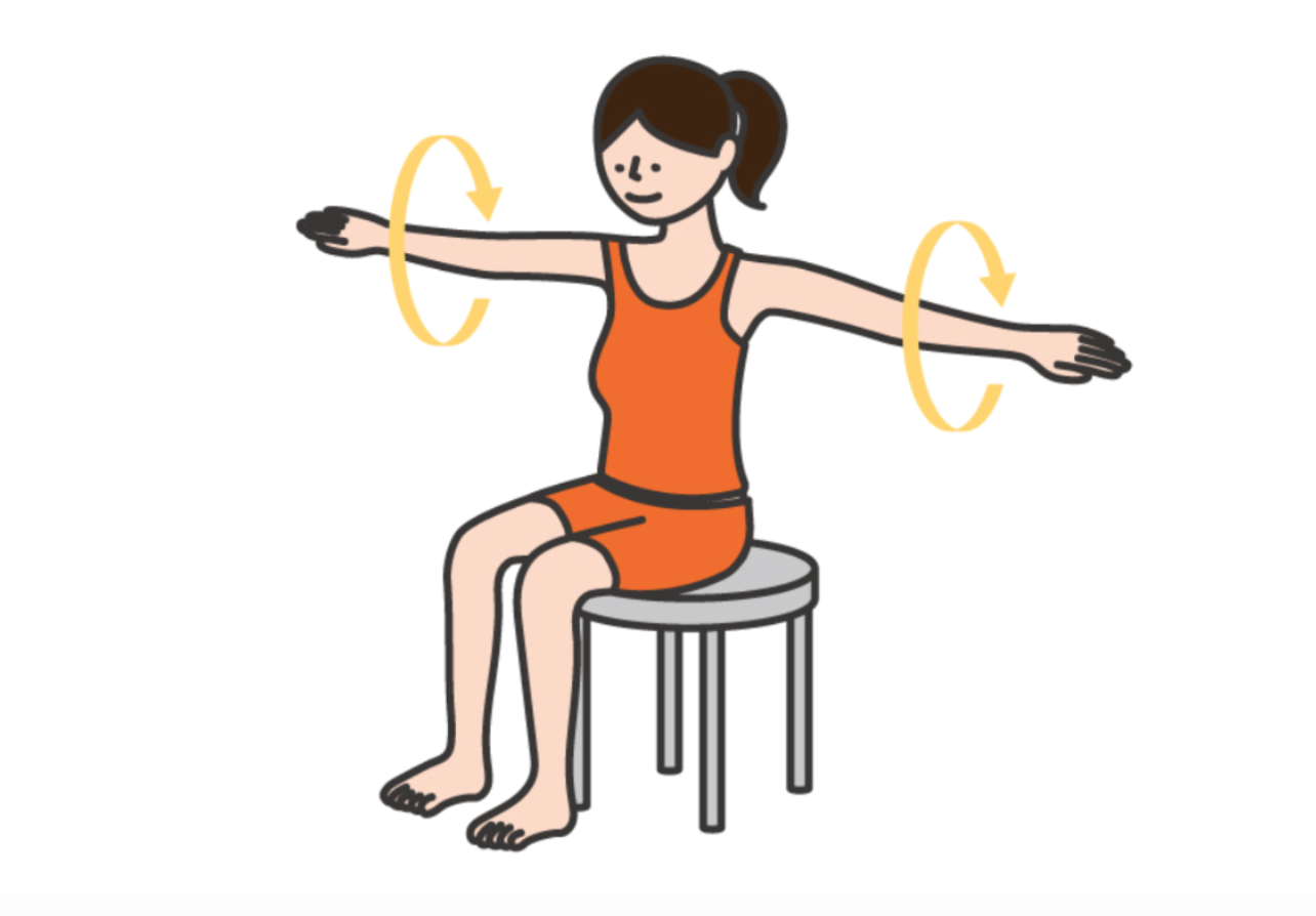 両手を肩の高さに上げ、指先を上に向けて、腕全体で小さな円を描くように回します。