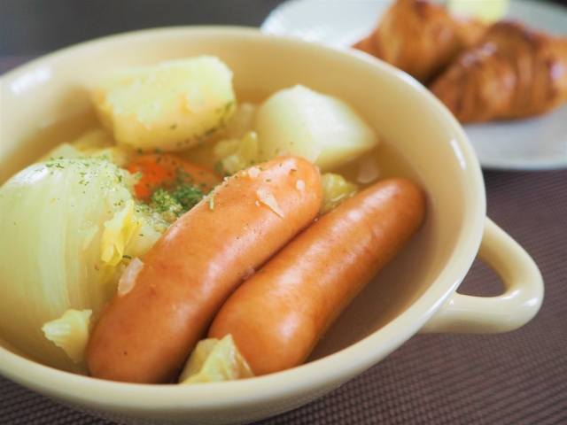 - ウィンナーやベーコンを加え、さらに10分ほど煮る。