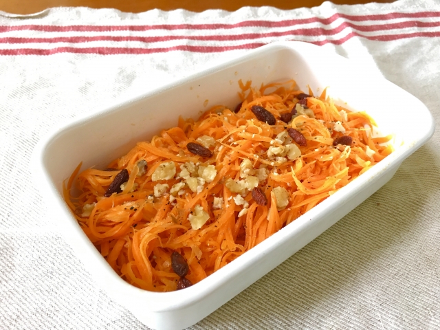 - 調味料を混ぜ合わせ、にんじんを加えて和える。