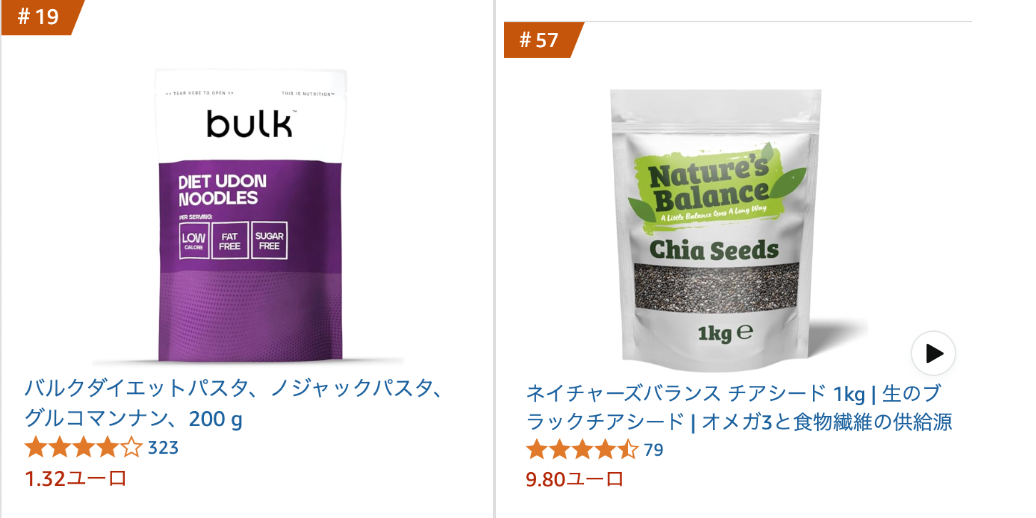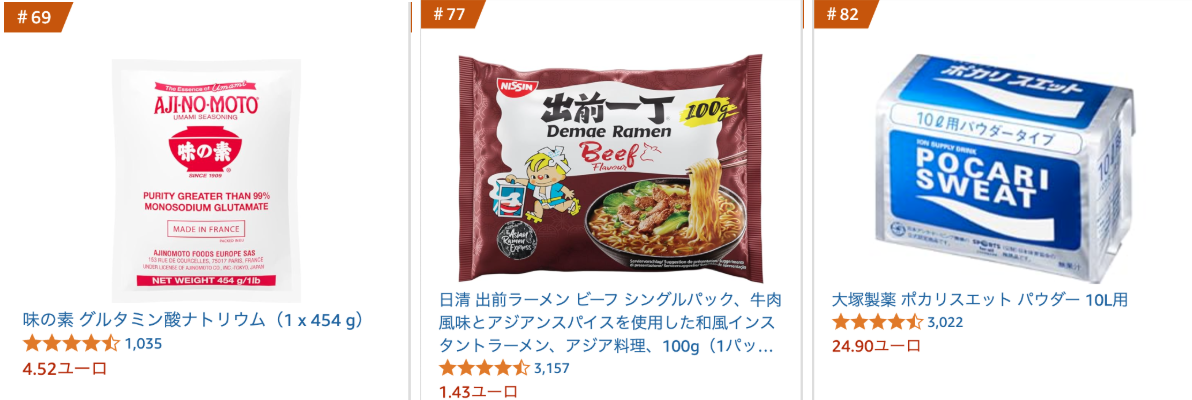 (※) 今回はアイルランド版Amazon(https://www.amazon.ie/gp/bestsellers/grocery?utm_source=chatgpt.com)「Amazon Best Sellers>Grocery」部門を調査。ランキングは常に変動します。